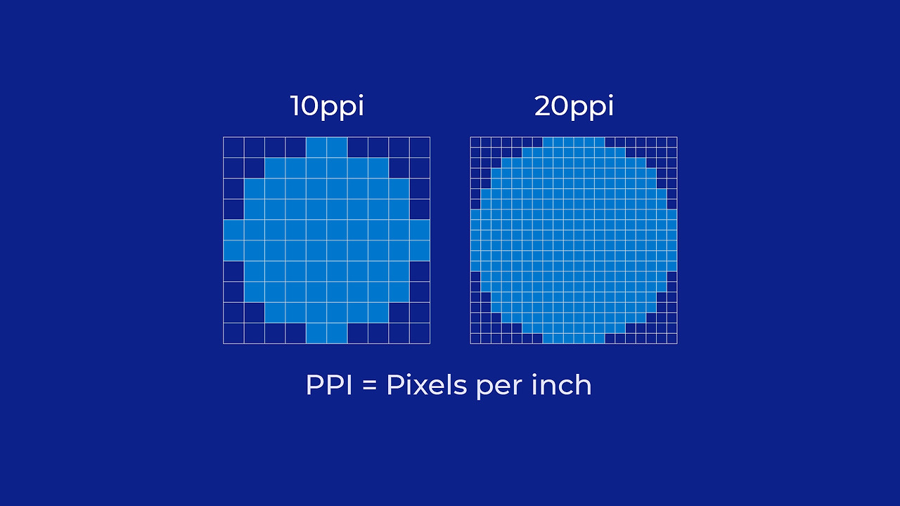 또한 픽셀이 많을 수록 위의 그림처럼 더욱 세세한 표현이 가능하다. 10픽셀로 원을 그렸을때는 뭉툭해보였던 그림이 2배인 20픽셀로 늘어나니 제법 원처럼 보이게되었다.