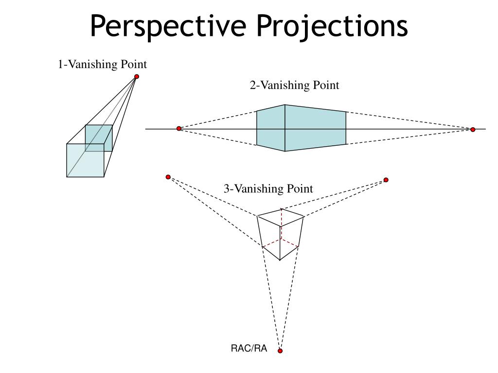 원근 투영에서는 평행 투영처럼 여러가지 분류가 나누어져있는것은 아니지만, Vanishing point(소실점)개수의 차이에 따라